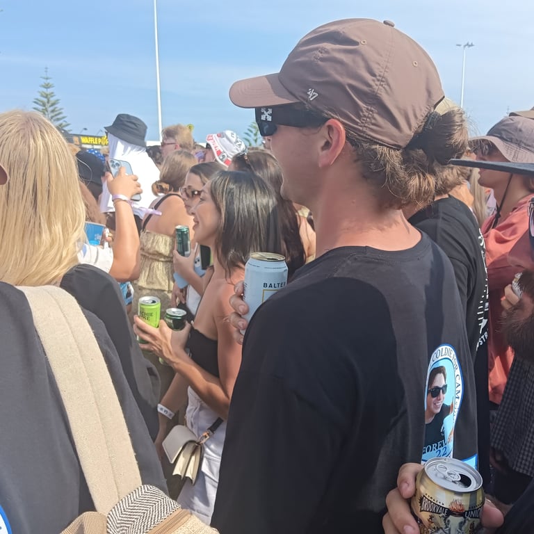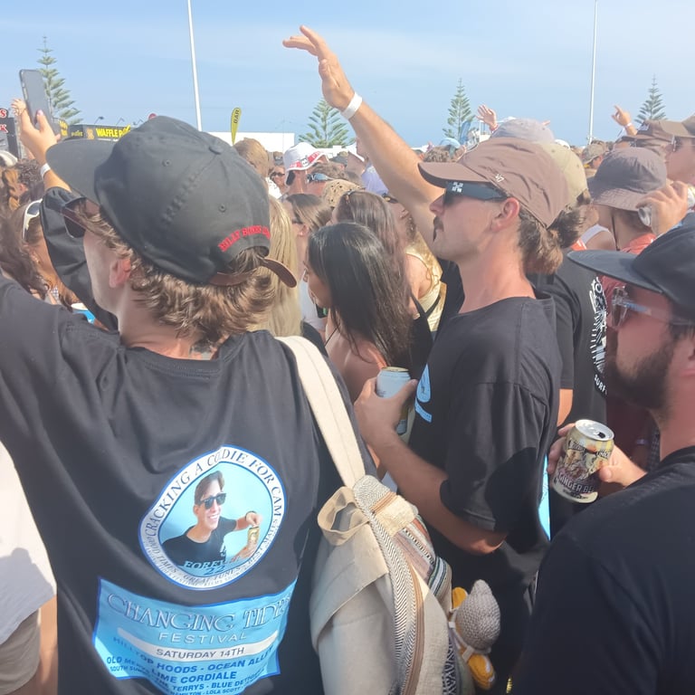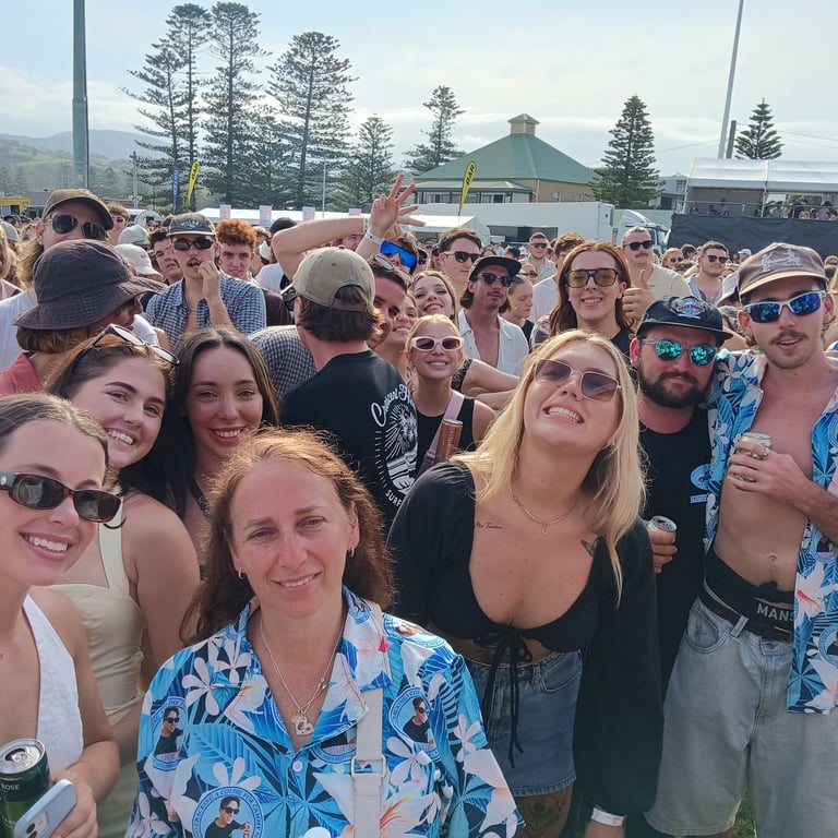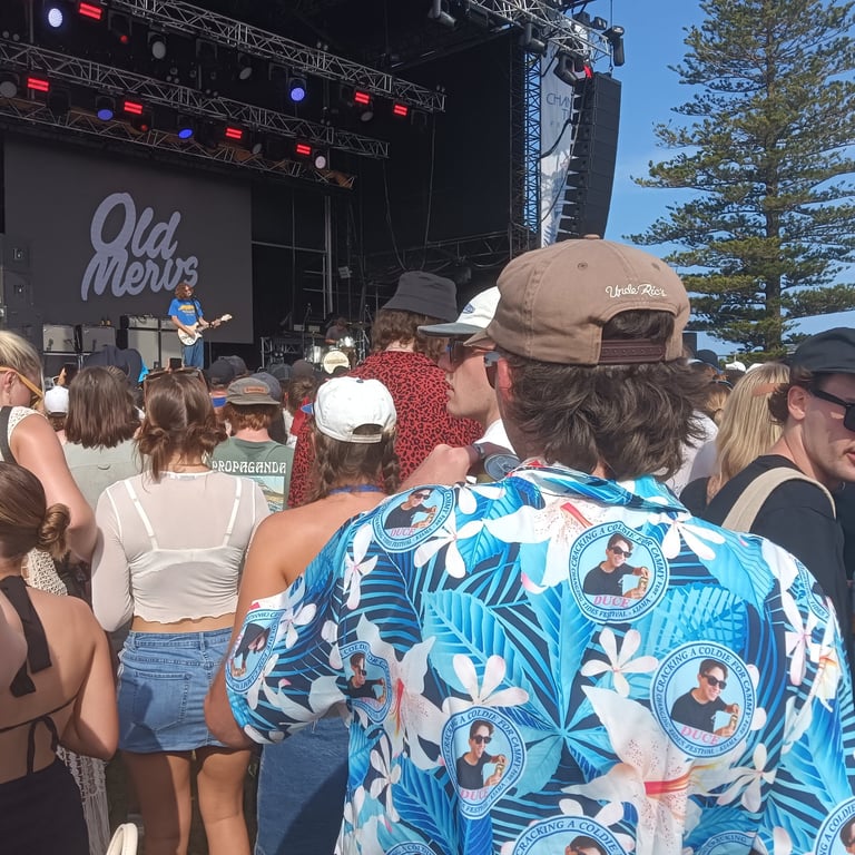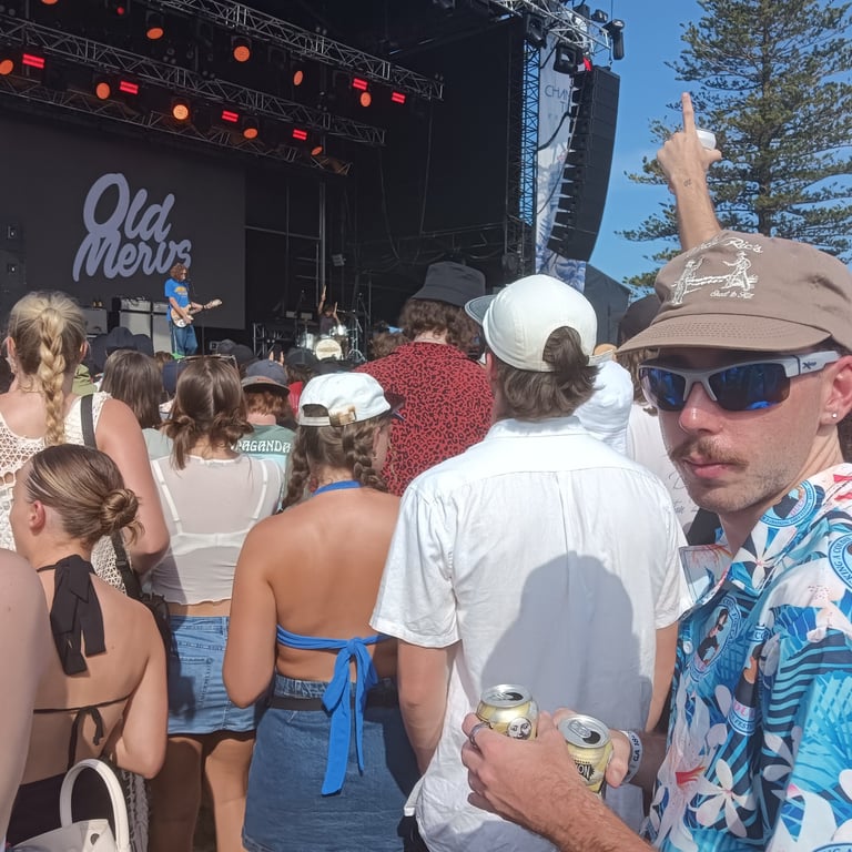 The Terrys, Old Mervs, Ocean Alley, Lime Cordiale and Hilltop Hoods, all playing on the same day. Cam's older sister Brianna found out about it and told us. We then told Cam's best mates about it, and those who could make it, made it! In the end 13 of us attended. 10 of us drove over 10 hours from the Gold Coast just to be there, because it was meant to be!
