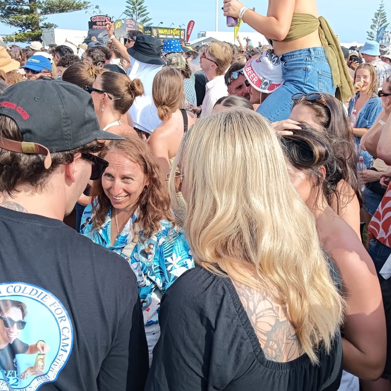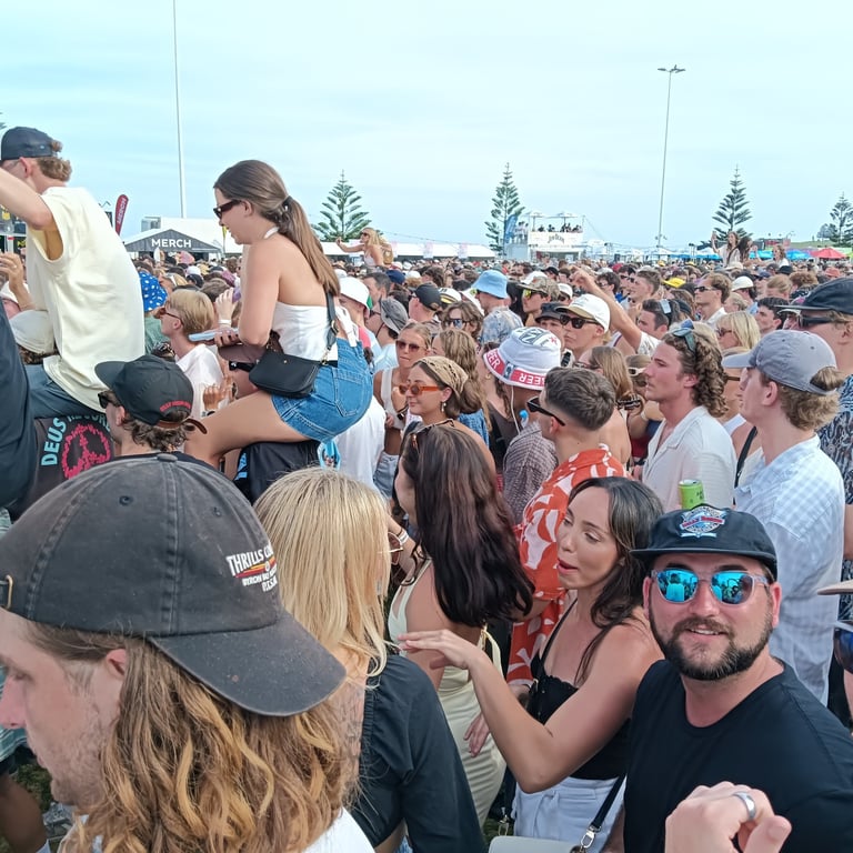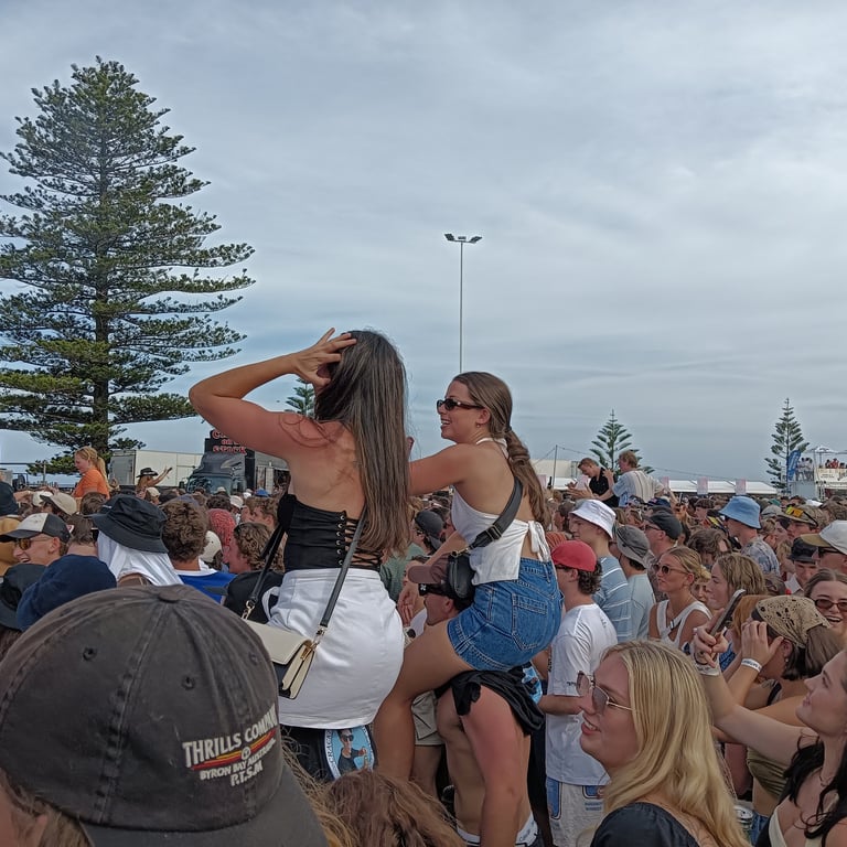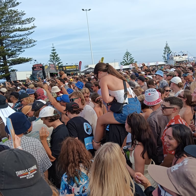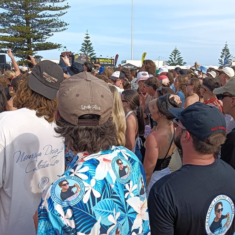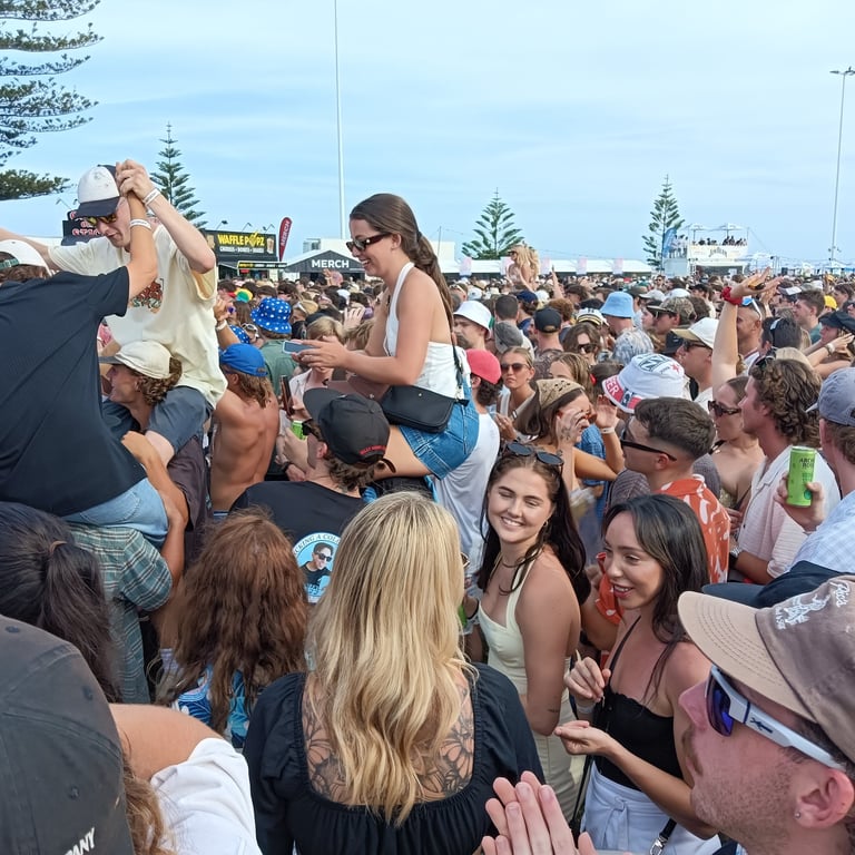The Terrys, Old Mervs, Ocean Alley, Lime Cordiale and Hilltop Hoods, all playing on the same day. Cam's older sister Brianna found out about it and told us. We then told Cam's best mates about it, and those who could make it, made it! In the end 13 of us attended. 10 of us drove over 10 hours from the Gold Coast just to be there, because it was meant to be!