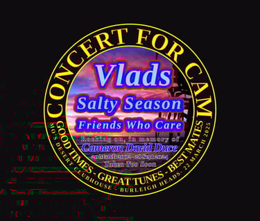 So an absolutely massive thanks again to Mo's Desert Clubhouse, Friends Who Care, The Terrys, Salty Season and Vlads for making it a massive night of Good Times, Great Music and Best Mates. And thank you to everyone who turned up and supported the event. It was amazing, over 150 tickets sold, we ran out of t-shirts. This event wouldn't have been the amazing success it was without all of you people, Cam's mates, family and friends and all the bands coming together to make it so special. It was a night that won't soon be forgotten and was worthy of the man it was named after, the Concert for Cam. Thank you all for being part of an amazing event in Cam's memory and honour.