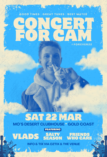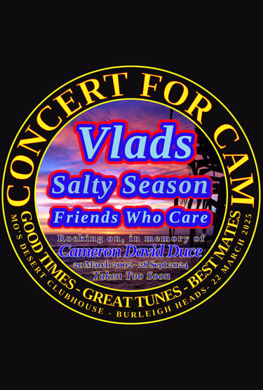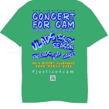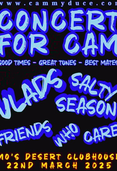 On Saturday 22nd March 2025, a special concert was held at Mo’s Desert Clubhouse to celebrate Cam's 23rd birthday and honor his memory and the fun loving guy he was, who always tried to make us smile, laugh and have a good time. This heartfelt event invited friends and family and anyone who likes good music and fun times to come together, remember Cam, and keep his spirit alive through music, mates and good times.